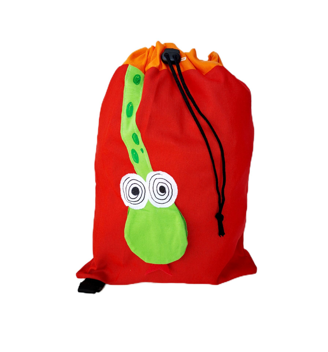 La serp (CLETA) obre la boca i té llengua. També s'enrosca pel darrera. Els petit@s poden jugar amb la mobilitat de la boca de la Cleta.