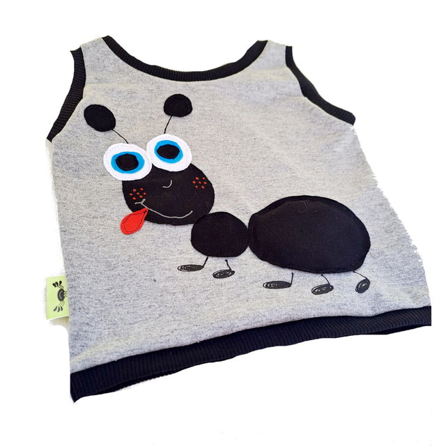 Samarreta de cotó amb tirants d'estiu. És de color gris combinat amb negre.