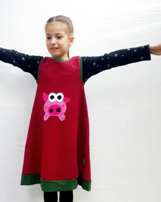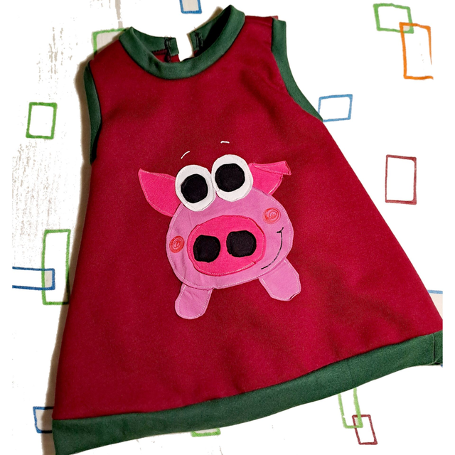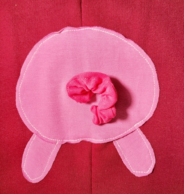 El porquet (MIQUELET) és un animal de granja molt simpàtic!! Està pel davant i pel darrera de la peça de vestir i per darrera té una cúa elàstica penjant!!.