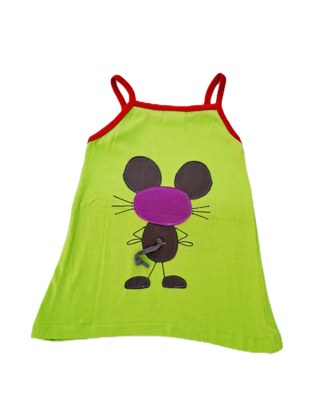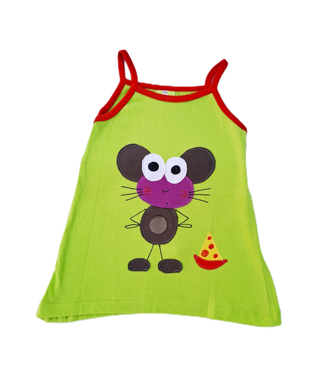 El ratolí (SERAFÍ) té un posat divertit i està tant davant com darrera de la samarreta. Al darrera té la cúa penjant.